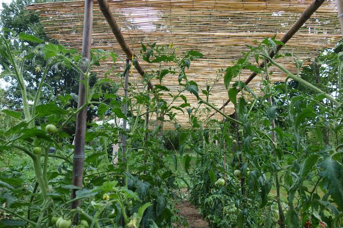 Sur cette armature sont déroulées des canisses ou des toiles à ombrer.