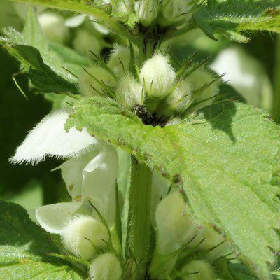 Ses fleurs blanches et leurs tiges carrées permettent de la distinguer facilement de l’ortie véritable.
