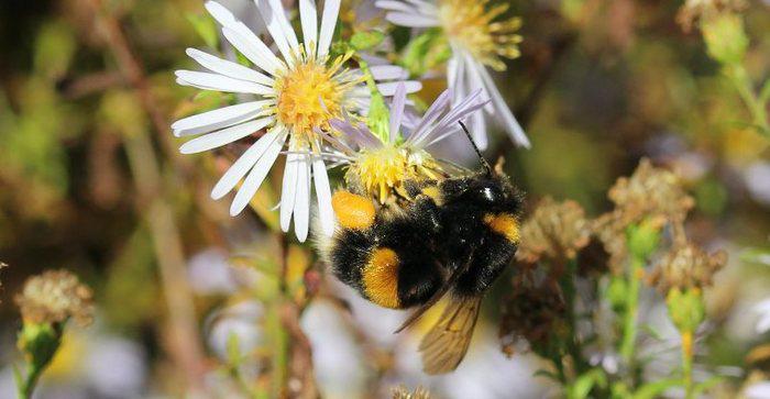En théorie, mi-octobre, les colonies du Bourdon terrestre ont périclité depuis quelques semaines déjà. La nouvelle génération sexuée a supplanté les bataillons d’ouvrières. C’est le temps des amours dont seules survivront les jeunes femelles fécondées. Les futures reines du printemps prochain. Dès lors, dans les couvains désertés, plus de bouches à nourrir. Et donc plus de collecte de pollen et de nectar ! Derniers accouplements, recherche d’un abri pour passer l’hiver… Bref, c’est l’automne.