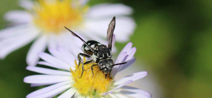 Dans la série des abeilles-coucous du jardin, l’Épéole fallacieux (Epeolus fallax) apparaît à la toute fin de l’été. Comme sa cible attitrée, la Collète du lierre. Mais lui n’a pas de préférence alimentaire. Toutes les fleurs de saison lui conviennent. À commencer par les plus généreuses du moment. Les asters.