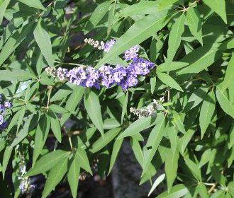 Avec ses longs épis floraux bleu violacé, le Gattilier (Vitex agnus-castus), alias l’Arbre au poivre, évoque un peu le généreux buddléia. Mais, lesdits épis sont ici plus lâches et leurs petites fleurs un peu chiffonnées. Le feuillage surtout diffère avec des « palmes » à cinq-sept folioles élégamment lancéolées. D’un vert bien franc.