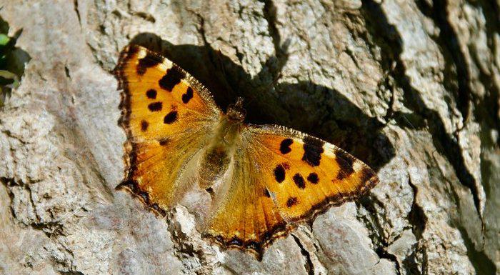 Pluies incessantes, tempêtes à répétitions… Un automne à ne pas mettre un papillon dehors ! Mais les après-midi sont encore si doux. Alors, à la moindre percée du soleil, la Grande tortue (Nymphalis polychloros) recharge ses batteries sur un lit de feuilles mortes, un tronc de peuplier ou le laurier sauce de la haie.