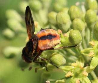 Nos amis anglais l’appellent le Syrphe des marais. Comme toutes les mouches de son genre, l’Hélophile suspendu (Helophilus pendulus) apprécie en effet les prairies humides. Il y installe ses larves, dans les eaux chargées de matières organiques des baisses ou des fossés envasés.