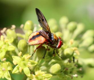 Encore une mouche qui gagne à être connue ! Malgré sa petite taille, moins de 1 cm, on voit la Phasie crassipenne (Ectophasia crassipennis) un peu partout actuellement, au jardin comme dans les prairies alentour.