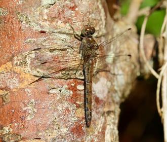 Chasseur inlassable, Monsieur Sympétrum strié sait aussi prendre le temps de longs bains de soleil. Comme ici plaqué contre un vieux piquet, au pied d’une haie. Parfaitement immobile. Mais toujours aux aguets.