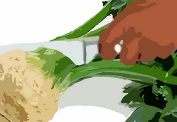 Décolletage : pratique qui consiste à retirer les fanes ou feuilles de certains légumes : betterave, céleri-rave, carotte....en vue de leur conservation.