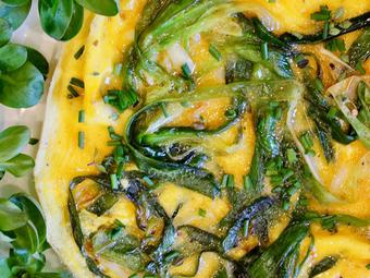 Le condiment du printemps par excellence. Mais pas seulement. En Poitou, l’ail vert est traditionnellement cuisiné avec le chevreau pascal. Plus modestement, quoi que, il relève ici une simple et savoureuse omelette.