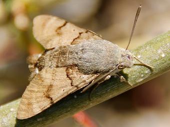 Il est beaucoup plus placide lorsqu’il fait la pause dans la haie voisine. Il est alors presque invisible. Ailes repliées, l’ensemble devient gris-fauve, marbré de brun, dans un mimétisme parfait avec la végétation. Les antennes en forme de massue, le haut des pattes plumeux, la pointe de l’abdomen hérissée de longs poils drus, le Moro sphinx ne tarde pas à reprendre du service. L’appel du nectar.