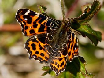 La dernière fois qu’elle est passée au jardin, elle était à dominante noire, discrètement marquée de blanc et de rouge. C’était l’été dernier. Deux générations se succèdent en effet chez la petite Carte de géographie. L’une printanière. L’autre estivale. Semblables dans l’allure générale et le comportement. Très différentes dans le jeu de couleurs de leur livrée.