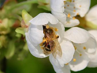 Les appels commencent à venir de toutes parts au jardin pour les pollinisateurs ! S’il reste des fleurs sauvages, du moins sur les zones enherbées, les fruitiers et l’inépuisable romarin tiennent encore le haut du pavé. Mais les premiers légumes, fèves et petits-pois, les platebandes fleuries et les arbustes d’ornement sont déjà parés pour prendre le relais.