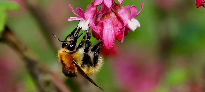 Dans cette course de séduction, le cassis-fleur à une longueur d’avance. Ses longues grappes de petites fleurs roses au cœur blanc ont une étonnante force d’attraction, particulièrement auprès des bourdons. Avec la complicité des premières feuilles aux puissants et enivrantes senteurs de cassis !