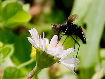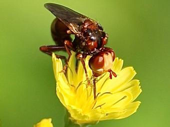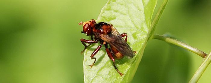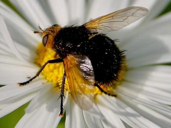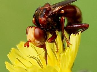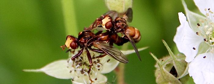 Les bourdons sont pourvus d’une abondante fourrure. Bien utile pour la collecte du pollen. Mais, hélas, cette pilosité peut leur être fatale si la femelle du Sicus ferrugineux (Sicus ferruginosus) passe à proximité. L’étrange mouche est en effet spécialiste des attaques aériennes. Elle pond ainsi ses œufs, un à un, en vol, de telle manière que chacun tombe sur le dos d’un bourdon. Les poils facilitent la réception. Sitôt l’éclosion, la larve perce la peau de son hôte involontaire, s’installe et se repaît… à l’intérieur. Elle en ressortira, devenue mouche, au printemps suivant, la pupe ayant passé l’hiver bien à l’abri dans le cadavre desséché du bourdon.