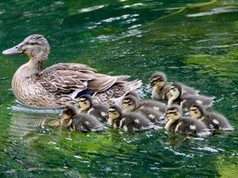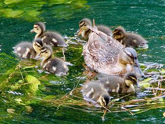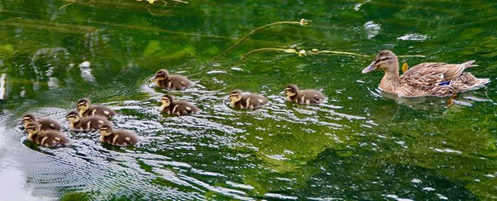 La fête reprend le lendemain, dès l’aube, dans l’eau verte de la Sèvre niortaise. Deux ou trois heures de chamailleries dans une relative fraicheur. Boire, s’amuser, gloutonner. Jusqu’à ce que la cane y mette le holà. Le soleil est maintenant trop brûlant. Il est temps de retrouver le nid. Un, deux, trois, quatre… neuf. Ils sont tous là. Vivement qu’ils découvrent la pluie. L’apprentissage sera plus reposant !