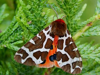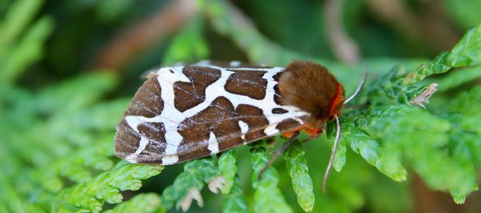 Elle s’est posée au petit matin du bon côté de la haie. Celui qui, tout le jour, lui évitera les ardeurs du soleil caniculaire. Comme la plupart des papillons dits de nuit, l’Écaille martre (Arctia caja) a replié ses ailes en un « triangle de camouflage ». Le sien est brun foncé, parcouru de larges veines blanc-crème.