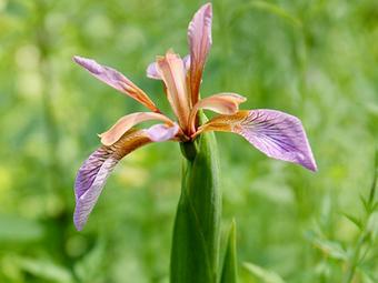 Il apprécie les prairies et les bosquets des milieux humides. Ses solides hampes émergent actuellement de longues et denses touffes de feuilles luisantes. Les premières fleurs s’épanouissent en ce début juin, un peu chétives au regard de leurs cousines cultivées. Et même de l’iris faux-acore qui lance pour quelques jours encore ses derniers feux au bord des fossés.