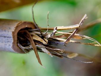 C’est là la clé du mystère. Car c’est bien un nid qu’aménage ainsi l’Isodonte mexicaine… Un nid à plusieurs cellules séparées par des débris végétaux. Dans chacune d’elles, elle dépose un criquet ou un petit grillon, vivant, mais anesthésié, puis pond un œuf. In fine, elle bouche le tube de bambou.