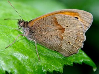 Brun taché d’orangé. Dans un coup d’œil rapide, on peut le confondre avec le Tircis. Mais le Myrtil (Maniola jurtina) a le vol bien plus sombre. Surtout le mâle. L’avers de ses ailes est en effet presque uniformément brun très foncé, à peine nuancé de roux autour d’un petit ocelle noir pointé de blanc. Madame est moins tristounette. Sa livrée brune s’illumine davantage de fauve. Surtout au soleil.