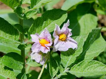 Pas de mildiou à l’horizon. C’est déjà ça. Croisons les doigts. Et, voilà enfin les premières fleurs. Premier test sur le premier pied de la planche des primeurs. La surprise est doublement belle. Les pommes de terre sont aussi nombreuses que saines. Aucune attaque de taupin. Pourvu que cela dure.