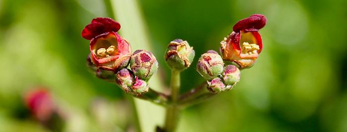 Les pieds dans l’eau, la Scrofulaire aquatique compte parmi les vigoureuses hôtes des rives de la Sèvre. Elle est remarquable par la section carrée de ses hautes tiges ramifiées. Et par ses feuilles joliment nervurées et dentées dont le pétiole est doté de deux oreillettes. Décidément !
