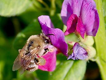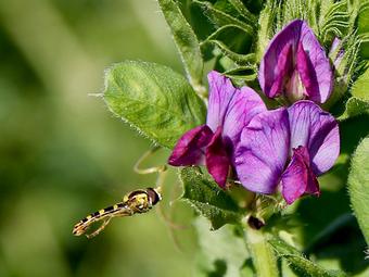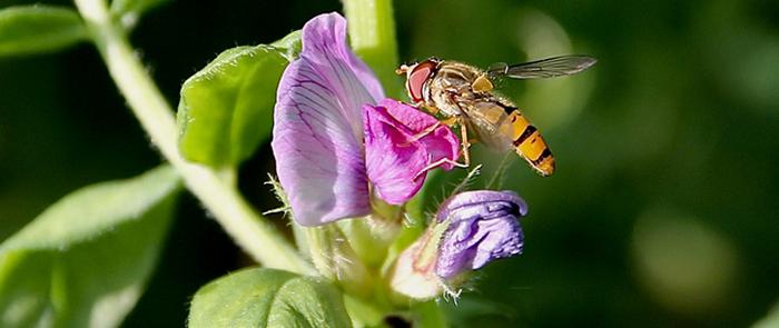 Fourragère, couvre-sol, engrais vert : la Vesce commune (Vicia sativa) a toutes les qualités. Excellente mellifère, c’est actuellement sa pleine saison.
