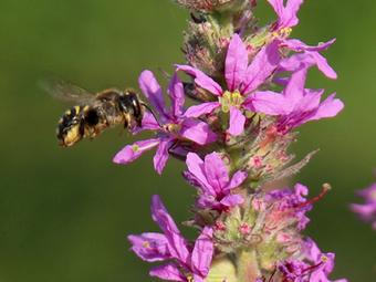 Sur le grand chandelier d’une Salicaire proche du jardin, gare à tout butineur « étranger », même plus ou moins cousin, qui ose s’approcher !
