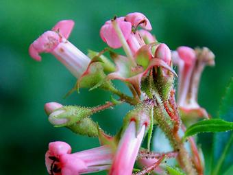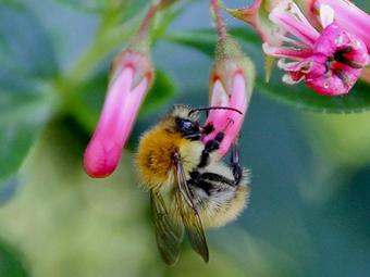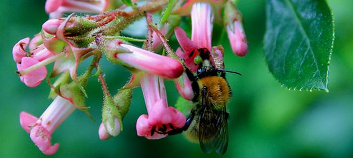 Les petites trompettes roses de l’Escallonia semblent taillées sur mesure pour la longue langue des bourdons. Ils ne s’en privent pas. Elles n’ont qu’un seul défaut pour ces impatients : les grappes florales de l’arbuste échelonnent leur épanouissement. Une fleur après l’autre.