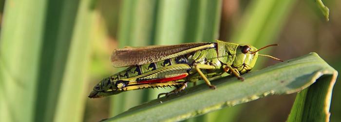Voilà un cousin éloigné de l’Oedipode turquoise inféodé aux zones humides. Pas étonnant donc de trouver le Criquet ensanglanté (Stethophyma grossum) dans le Marais poitevin. Ici dans une de ses positions favorites. Pour mieux prendre le soleil au bord d’un fossé. Et grignoter la tranche d’une feuille d’Iris faux-acore.