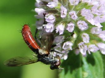 Ce sont surtout les larves de la Phasie crassipenne qui sont de précieux auxiliaires. Elles parasitent en effet les larves d’autres insectes. En particulier des punaises ! Mieux encore que la célèbre Trichopoda pennipes dont la réputation est essentiellement attachée à la Punaise verte ponctuée. La Phasie n’est pas si regardante. Tant mieux. Car, pour en réguler les populations, les « suceuses » n’ont guère de prédateurs.