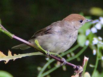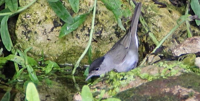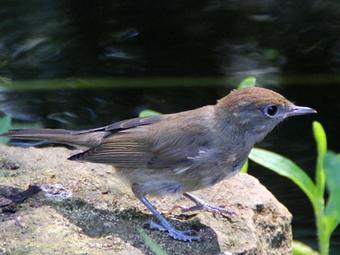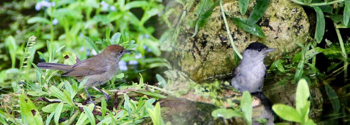 On a vu la Fauvette à tête noire (Sylvia atricapilla) tenir la dragée haute à ces galopins de merleaux autour de la mare. À tête noire ? Encore une vision quelque peu machiste. Car si le mâle arbore bien une calotte noire, large et luisante, celle de la femelle est plutôt brune. Presque rousse.