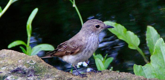 Comme bien d’autres pensionnaires du jardin, le Gobemouche gris a ses habitudes aux abords de la mare. Il y est à la fois si hardi et furtif dans ses rapides libations que les merleaux ont renoncé à lui faire la chasse !