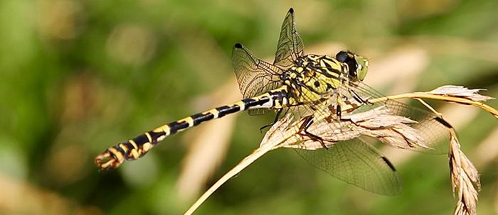 On appelle ça pudiquement des « appendices anaux ». Au moins, on sait où les trouver ! Cela dit, rien à voir avec la fonction digestive des libellules. C’est plutôt lors de leurs acrobatiques accouplements que lesdits appendices sont utiles. Pour s’accrocher l’un l’autre. Chez le Gomphe à pinces (Onychogomphus forcipatus), ils sont assez spectaculaires. Du moins pour le mâle qui arbore ici une véritable petite « pince à sucre ».