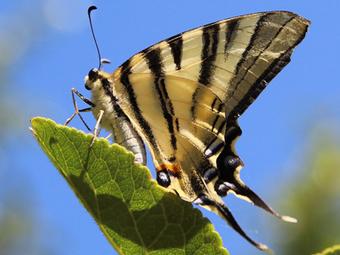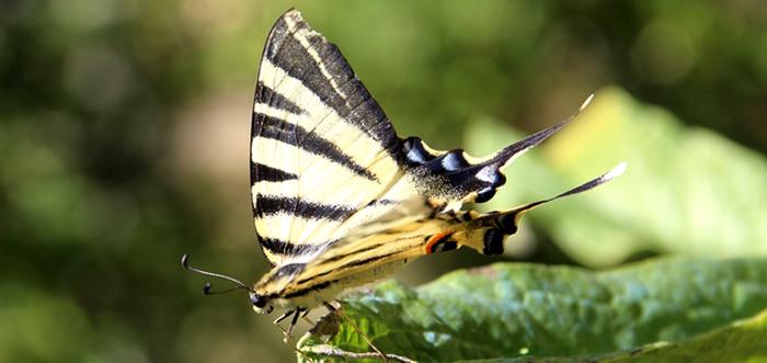 Tout le contraire de la Sylvaine ! Elle est petite, vive et trapue. Il est majestueux. Au repos comme dans ses longs vols planés. Elle est quasi impossible à suivre du regard. Quel plaisir de se laisser embarquer par les amples acrobaties du Flambé (Iphiclides podalirius)… Sans aucun doute l’un des papillons les plus spectaculaires du jardin.