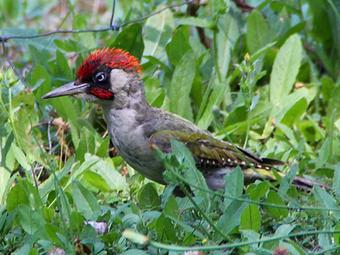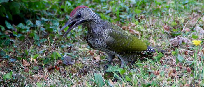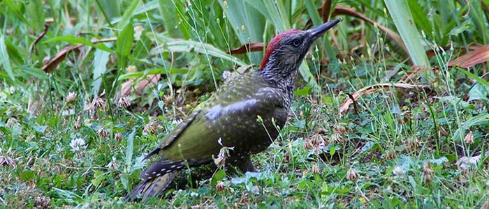 Un bec si puissant pour de si petites proies ! Au jardin comme ailleurs, le Pic vert (Picus viridis) se nourrit en effet essentiellement de fourmis. Et s’il martèle le sol avec tant d’ardeur, c’est pour atteindre et crever une de leurs galeries. Ou mieux, leur nid. Il ne reste plus alors qu’à y insinuer la langue ! Et à se régaler.