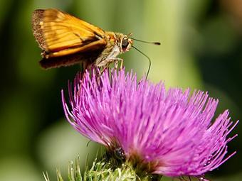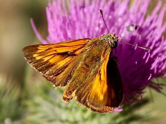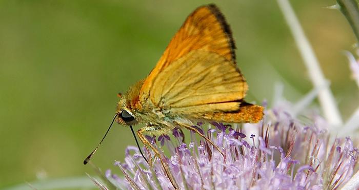 Voilà un petit papillon taillé pour les démarrages en trombe ! Avec de petites ailes nerveuses ramassées sur un corps trapu… N’essayez pas de le suivre des yeux, il est bien trop vif et rapide pour vous ! Rassurez-vous, si la source de nectar lui a plu, la Sylvaine (Ochlodes sylvanus) ne tardera pas à y revenir.