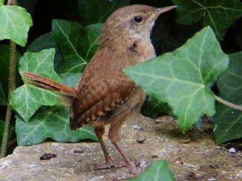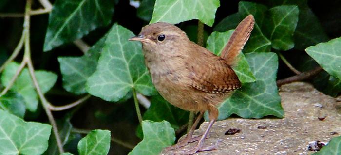 Il a beau se dresser sur ses ergots, ici au bord de la mare, le Troglodyte mignon n’en reste pas moins le lilliputien du jardin. Il est d’ordinaire moins facile à repérer. Un peu comme l’Accenteur mouchet, il furète en effet le plus souvent au pied des haies, dans les fourrés et les broussailles, traquant petits insectes et araignées. On l’aperçoit aussi furtivement inspectant les berges de la Sèvre et des fossés alentour.