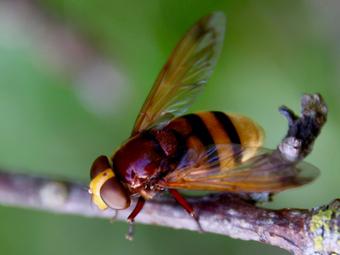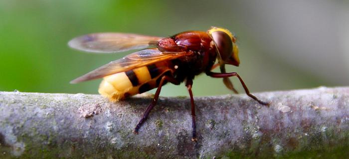 Car la grosse mouche est téméraire ! Elle va pondre ses œufs à l’intérieur même des nids de frelons. Avec pareil « costume », l’intrusion est quasi incognito. Ses larves y feront d’abord le ménage, dévorant cadavres et déchets divers, pour terminer avec le couvain.