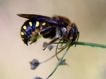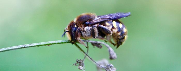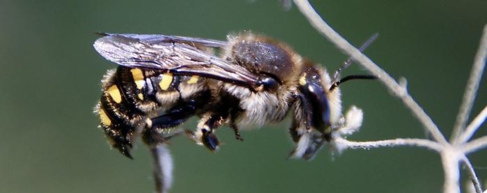 On a vu voilà peu l’Anthidie particulièrement active sur les salicaires du bord de Sèvre. En cette saison, elle apprécie également les épineuses inflorescences de la cardère. Mais, pour être hyperactive, il lui arrive aussi de dormir ! Et pas seulement la nuit. Surtout le mâle. Alors, il n’est pas rare de surprendre le sommeil de l’Anthidie. Même sous le soleil. Une petite sieste n’a jamais fait de mal à personne.