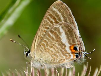 Avec une discrète petite excroissance, il n’a certes pas de quoi rivaliser avec l’Azuré porte-queue. Mais c’est juste assez pour mettre en valeur la bordure orangée pointée de noir des ailes postérieures.