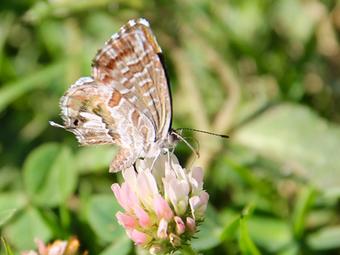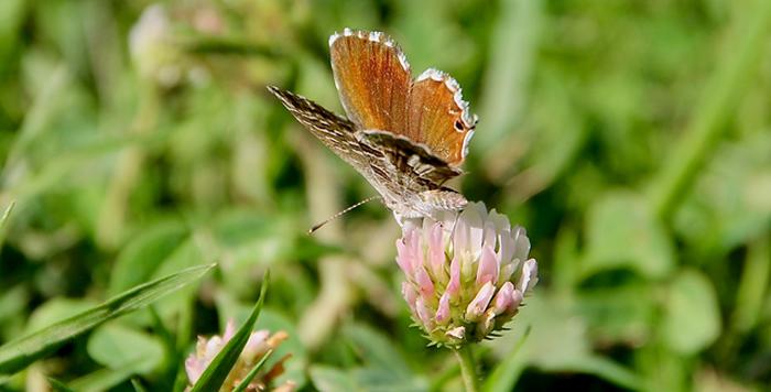 On l’appelle aussi l’Argus bronzé. Un cousin de l’Azuré commun donc. Aussi petit, mais pas une once de bleu sur une livrée où dominent le brun et l’orangé mêlé de rouge. Ce n’est plus du bronzage, c’est un coup de soleil !