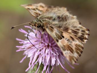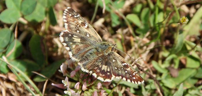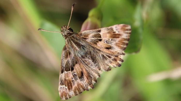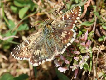 Si les Hespéries du jardin sont difficiles à distinguer entre elles, notamment celle des potentilles et de la mauve, pas de confusion possible ici. L’Hespérie de la Passe-Rose, alias la Grisette, est en effet plus marbrée que tachetée.