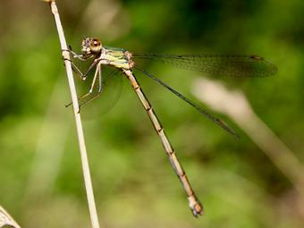 Plus discret que la grande demoiselle métallique, le Leste vert (Chalcolestes viridis) est omniprésent au jardin en cette fin août. Une taille assez nettement au-dessus de la plupart des autres agrions, il se reconnaît aisément.