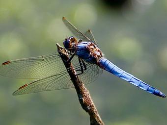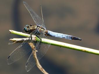 Une libellule bleue. La livrée est quasi uniforme. Des yeux jusqu’à la pointe de l’abdomen. Voilà donc a priori Monsieur Orthétrum bleuissant (Orthetrum coerulescens). Encore qu’il ne faille jurer de rien avec les libellules !
