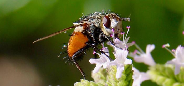 Encore une mouche auxiliaire du jardin qui gagne à être (re)connue ! La Peletaria rubescens n’a pourtant pas de nom populaire. Il est vrai qu’elle n’est pas si courante. Et qu’on peut aisément la confondre avec la Tachinaire sauvage avec laquelle elle partage notamment des lignes de soies épaisses sur un abdomen orangé où se mêlent quelques reflets argentés.