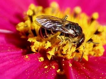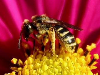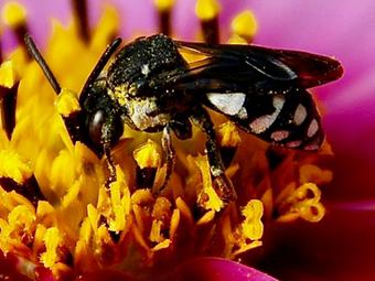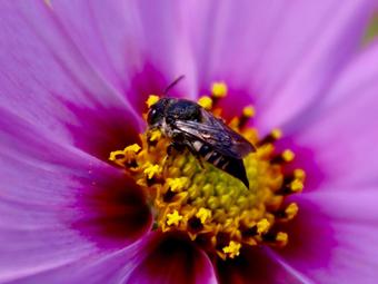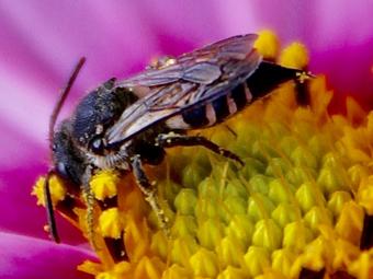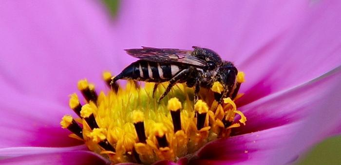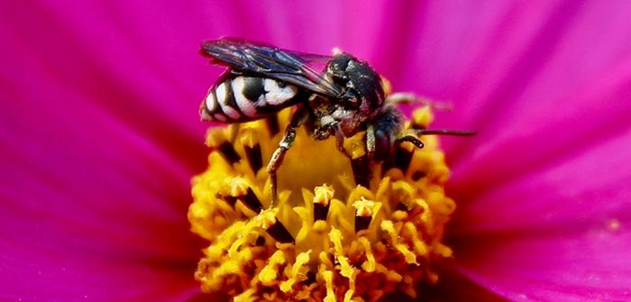 De petite taille, à dominante noire, l’abdomen taché de blanc, les yeux bruns ocellés, la sans-gêne disparaît dès son forfait accompli. Pour aller butiner les cosmos tout proches. Mais pour son propre compte. À quoi bon se fatiguer ? Ses larves ne manqueront de rien. Les collètes sont si consciencieuses.