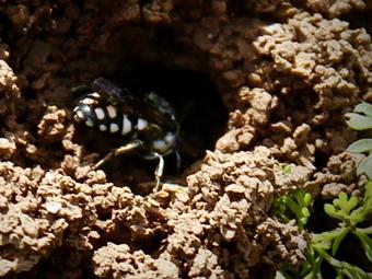 Sitôt la voie libre, ni une ni deux, elle s’engouffre dans le terrier. Juste le temps de se débarrasser des œufs en place et d’y pondre les siens. À son retour, la Collète ne s’apercevra de rien et continuera à amasser les provisions de nectar et de pollen.