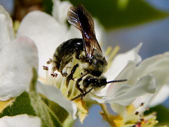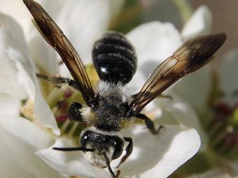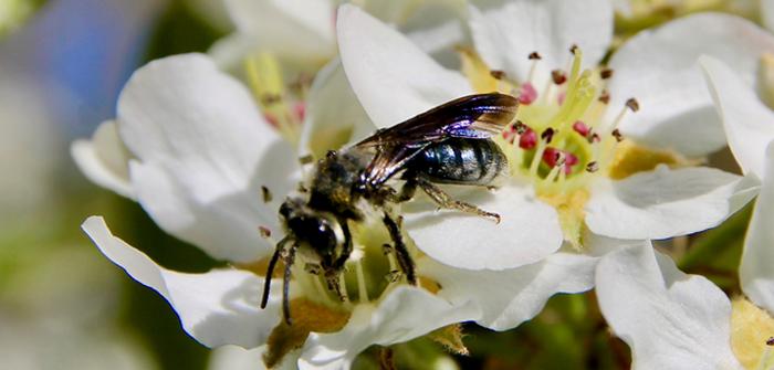 Retour sur le printemps dernier. La belle saison où les abeilles sauvages étaient si nombreuses au jardin ! À l’appel des arbres fruitiers en fleurs notamment. Si nombreuses que toutes n’ont pu prendre place dans cette chronique… Ainsi le petit Andrène agile (Andrena agilissima), il est vrai assez proche de l’Andrène cendré qui, à l’époque, a eu la préférence.