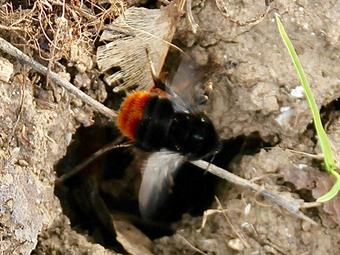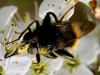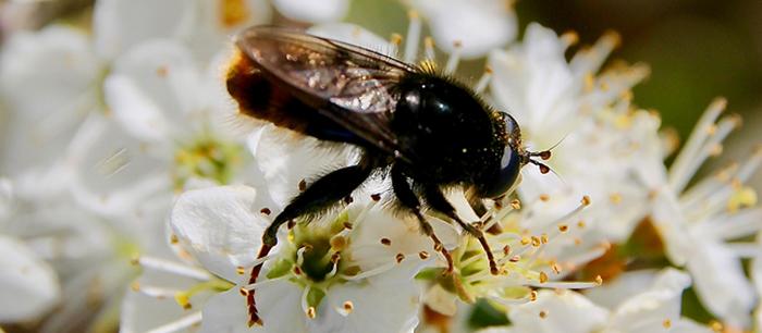 Au bal costumé des mouches, l’imitation du Bourdon des pierres ne manque pas d’émules. Il est vrai que la panoplie est a priori assez simple. Il suffit d’être de belle taille, très velu, entièrement noir, sauf… le « cul roux » ! À ce jeu-là, la Criorhina ranunculi coche toutes les cases.
