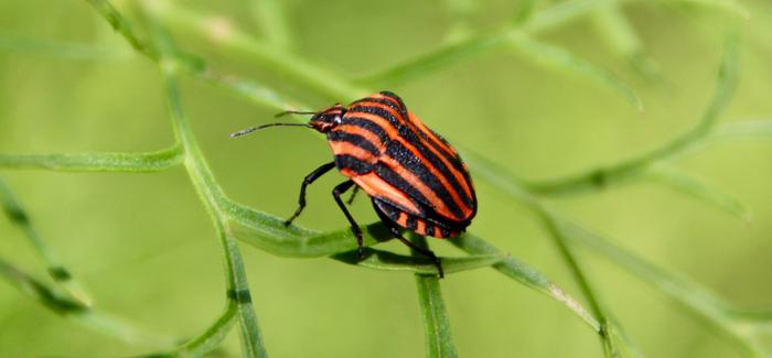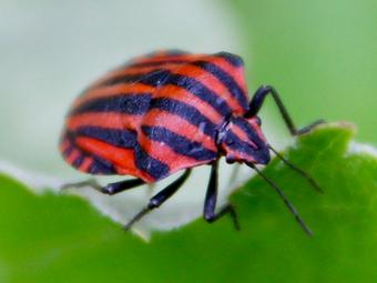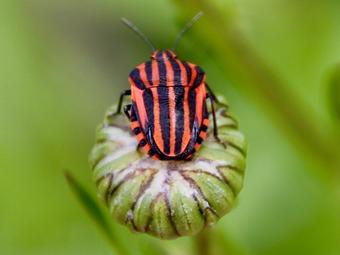 Deux bandes noires en V sur le fond rouge de la tête. Six sur le corselet. Quatre sur le large écusson. Et la bordure saillante de l’abdomen alterne également rouge et noir. Est-ce cette pimpante livrée qui lui vaut davantage de sympathie que les autres punaises ?