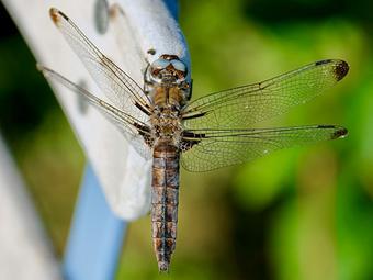 On a souvent vu Madame, dès le mois de mai et tout l’été au jardin. Assez curieusement, Monsieur Libellule fauve (Libellula fulva) semble avoir attendu l’automne pour s’y aventurer. Comme un dernier tour de piste !