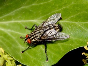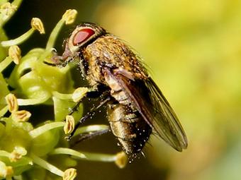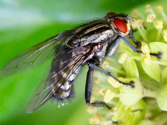 Sa mauvaise réputation lui vient de ses intrusions intempestives en cuisine, voire à table où les plats de viande et de poisson ont sa préférence. Dans la nature, elle apprécie le nectar, notamment ici du lierre, mais aussi les sucs… de cadavres et d’excréments. Ce n’est pas forcément là que s’épanouissent ses larves. La femelle a aussi l’habitude de les déposer à l’entrée des galeries de vers de terre. Et c’est donc aux dépens des lombrics que les futures Mouches à damier vont se développer. Pas de quoi les rendre plus sympathiques.